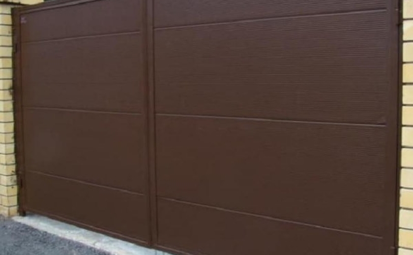 Ворота из сэндвич-панелей, имитирующих текстуру древесины (золотой дуб, темный дуб,  вишня), обладают всеми преимуществами стальных ворот и придают коттеджу  элементы престижа и индивидуальности.